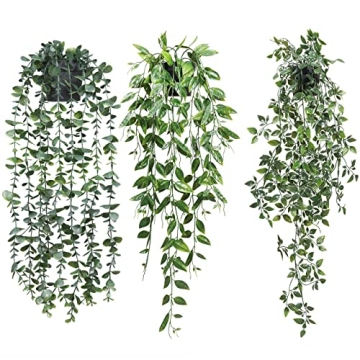 TOTOGA 3 Pack LifLike Artificial Hanging Plants - Perfect for Home & Office