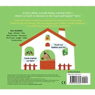"Touch and Explore: Farm" stands out in a sea of children's books thanks to its unique focus on sensory interaction. Unlike many traditional storybooks, this title encourages hands-on exploration, setting it apart from less interactive options. While other sensory books may focus solely on texture, this book beautifully combines visual appeal with physical engagement, creating an immersive learning experience that fosters curiosity and cognitive development. Parents and educators will appreciate how it effectively merges play with education, making it a preferred choice over competitors.