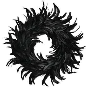 Touch of Nature Cocktail Feather Wreath, 15-Inch - Black Cocktail Feathers - Front Door Wreath - Natural Feathers
