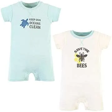 Touched by Nature Baby Boys' Organic Cotton Rompers, Save The Bees, 0-3 Months