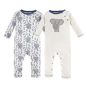 Touched by Nature Unisex Baby Organic Cotton Coveralls - Elephant - 9-12 Months