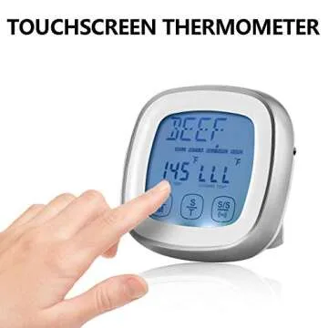 Touchscreen Digital Food Thermometer - Instant Read Meat Thermometer with Timer Alert and Long Food Grade Probe for Kitchen Cooking BBQ Grill Smoker