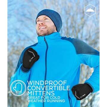 Tough Outdoors Running Mitten Gloves with Touch Screen - Winter Glove Liners with Convertible Mittens Cover for Texting