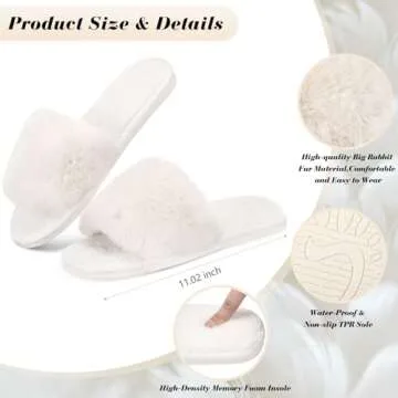 Toulite 6 Pairs Wedding Bridesmaid Slippers Women Fluffy Open Toe Slippers Fuzzy Plush House Slippers for Bridal Party (Elegant Style)