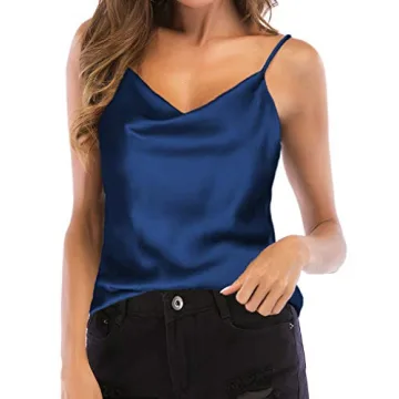TOUTOUAI Women's Silk Satin Camisole Cowl Neck Tank Top Cami Silky Basic Tank Shirt Blouses (Blue, 4-6)