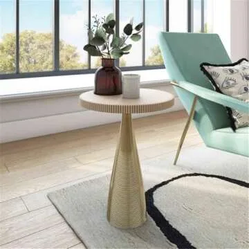 Tov Furniture Celeste 15" Wide Gold and Pale Satin Ribbed Round Side Table