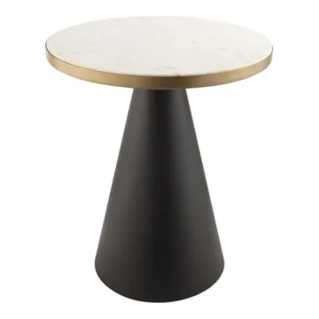 Show moreIntroducing the exquisite Tov Furniture Richard White Marble Top with Black Conical Metal Base—a statement piece that perfectly combines elegance and functionality. Handmade by skilled craftsmen, this table features a stunning white marble top elegantly bordered in gold, which not only enhances its visual appeal but also adds a touch of sophistication to any living space. The uniquely designed black conical pedestal base offers stability and support, making it the ideal occasional table for your home.