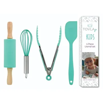 Show moreUnleash the inner chef in your child with the delightful Tovla Jr. 4-Piece Kids Cooking Set! This enchanting cooking kit is specially designed to make culinary experiences fun and safe for little hands. Each set includes a vibrantly colored spatula, a handy whisk, a versatile rolling pin, and a pair of mini tongs that are perfect for budding chefs. Perfectly sized for small hands, these utensils promote creativity and learning while ensuring that kids can safely participate in cooking fun.
