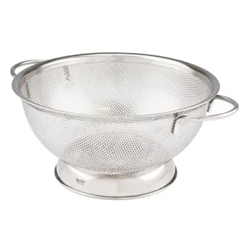Show moreIntroducing the Tovolo Stainless Steel Colander – the essential cooking aid that every kitchen deserves! Crafted with meticulous attention to detail, this footed colander is your all-in-one solution for straining, rinsing, and washing with unmatched precision. Made from premium stainless steel, it boasts a rust-resistant design that ensures long-lasting durability, making it a reliable companion for all your culinary adventures. With small holes carefully positioned to prevent small items like grains or pasta from escaping, you can easily drain pasta, wash vegetables, and even rinse rice without a worry. Its substantial size of 2.5 quarts makes it perfect for heavy-duty tasks, while its lightweight nature allows for effortless control.