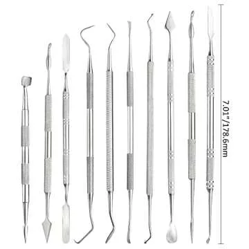 TOVOT 10PCS Stainless Steel Double-Sided Wax Carving Tools Metal Sculpting Tools Clay Modeling Tools (Silver-2)