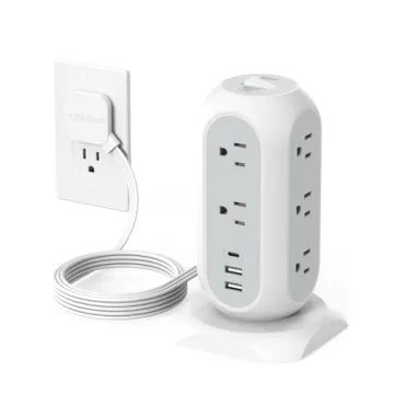 TESSAN Tower Power Strip: 11 Outlets & 3 USB Ports, 6ft Cord
