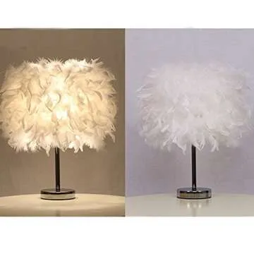 TowerTree Feather lamp,White Beside Table lamp for Bedroom,Children,Wedding,Birthday,Vintage Deco Desk Light Free Light buld Include(A)