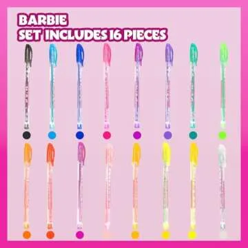 Townley Girl Barbie 16 Piece Glitter Pen Body Art Set for Kids, 16 Vibrant Colors to Spark Creativity!