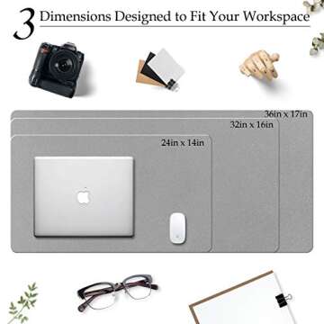 TOWWI PU Leather Desk Pad with Suede Base, Multi-Color Non-Slip Mouse Pad, 32” x 16” Waterproof Desk Writing Mat, Large Desk Blotter Protector (Gray)