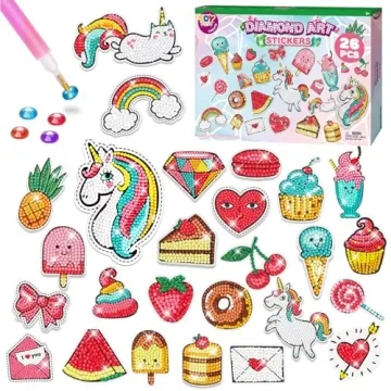 The kit includes 26 unique diamond sticker designs, featuring a variety of charming and colorful themes.