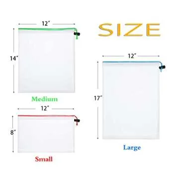 Show moreDiscover the ultimate solution to toy chaos with our Toy Storage & Organization Mesh Bags Set of 20. Designed thoughtfully for parents and children alike, this set includes an impressive variety of 10 Large (12x17in), 5 Medium (12x14in), and 5 Small (12x8in) mesh bags tailored to accommodate everything from baby toys to game pieces and even bathtub toys. Crafted from durable, washable mesh, these bags help you organize and classify toys while keeping them easily accessible for your little ones. With bright and distinct colored labels for quick identification, managing toy collections has never been more efficient or hassle-free!