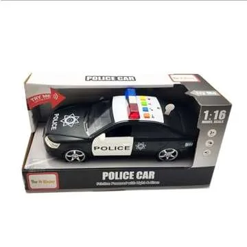 Show more Introducing the ultimate police car toy that is designed to thrill and inspire your child's imagination! This friction-powered police car moves effortlessly without the need for batteries; just a gentle push sends it racing across any flat surface. Ideal for budding little cops, it features realistic sound effects including sirens, engine start, and more that will keep your child captivated for hours. Press the four buttons on the top to experience the auditory excitement!