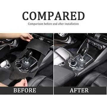 Show moreElevate the interior of your Alfa Romeo Giulia with the TOYCIDFG Interior Center Console Gear Shift Panel Cover Trim. Specifically designed for the 2017 to 2019 models, this stunning trim piece is crafted from **real carbon fiber**, ensuring a lightweight, durable, and luxurious enhancement to your vehicle's cockpit. With its rust-proof and non-fading properties, this gear shift panel cover is made to withstand the test of time while looking impeccably stylish. The glossy finish not only catches the eye but also adds a touch of elegance, perfectly complementing the performance-oriented ethos of your Italian sports sedan.