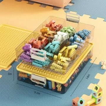 Toys Storage Organizer Bins for Lego, Stackable Toys Organizer, Lego Building Block Storage, Toy Storage Box with 24 Palace Grids, Plastic Stackable Organizer Bins (Yellow 3layers)