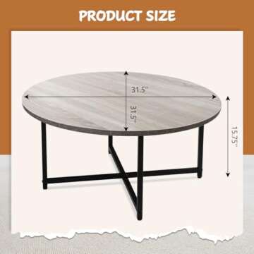 TOYSINTHEBOX Round Coffee Table Modern Coffee Table Sofa Table Tea Table for Living Room, Office Desk, Balcony, Wood Desktop and Metal Legs, Nature, 31.5"