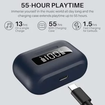 Experience uninterrupted listening with an astounding 55-hour playtime when combined with the charging case, perfect for those long days filled with meetings and activities. With just 10 minutes of charging, you can enjoy an hour of music, ensuring you’re never left without your favorite tunes when short on time.