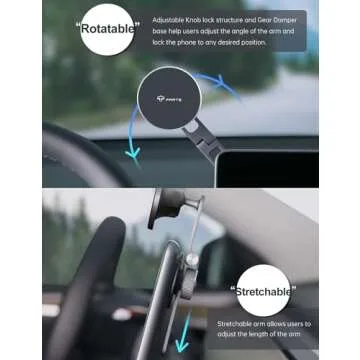 Show moreThe TPARTS Foldable Magnetic Car Cellphone Mount is the ultimate accessory designed specifically for Tesla Model 3 and Model Y, merging functionality with sleek aesthetics seamlessly. This innovative phone mount is crafted to harmoniously blend into your vehicle, offering a foldable design that allows it to tuck away discreetly behind the touchscreen when not in use. With its flexible viewing angles, you can adjust your device to achieve optimal visibility, whether you're navigating, taking calls, or enjoying your favorite music. Experience the convenience and elegance of this essential mount that retains the interior sophistication of your Tesla.