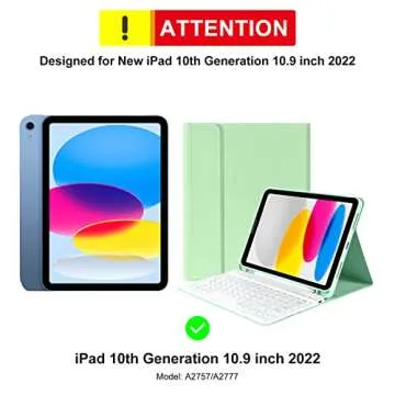 Show moreIntroducing the ultimate iPad 10th Generation Case with Keyboard, specifically designed to perfectly complement your brand new iPad 10th Generation 10.9 inch 2022 release (Model: A2757/A2777). This remarkable case not only offers robust protection for your device but also transforms it into a multifunctional workspace, making it an essential accessory for students, professionals, and anyone on the move. The magnetic detachable keyboard allows you to seamlessly switch between typing and touchscreen functionality, ensuring your daily tasks are handled with ease and efficiency.