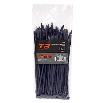 TR Industrial Black Cable Ties - UV Resistant, 8 Inch, 100 Pack for Versatile Use