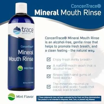 Trace Minerals | ConcenTrace® Mineral Mouth Rinse | Gentle Mouth Rinse, Fresh Breath | Alcohol Free, Certified Vegan, Gluten Free, Non-GMO | Mint | 10 oz