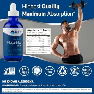 Show moreIntroducing Trace Minerals Mega-Mag, a superior liquid energy support supplement designed to enhance your overall health and vitality. This unique formula features ionic magnesium and chloride, ensuring optimal absorption and maximum benefit. With a commitment to supporting over 300 biochemical reactions in your body, Mega-Mag is not just a supplement—it's a comprehensive solution for anyone looking to enhance muscle and nerve function, support heart health, and maintain healthy hydration. This 4 fl oz bottle provides 30 servings of essential minerals to fuel your active lifestyle.