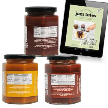 Show more Introducing the **Trade Street Jam Co. Favorite Things Gift Set**, a delightful culinary treasure chest perfect for those who appreciate bold, unique flavors! This exquisite set features a curated selection of artisanal jams, showcasing the very best of fresh, locally sourced ingredients. Dive into the scrumptious taste of **Strawberry Chipotle & Fig**, **Smoked Yellow Peach**, and **Sour Cherry Ginger**, each carefully crafted to redefine your jam experience. Alongside these delightful spreads, you’ll receive a **Jam Tales Digital Cookbook** that presents innovative ways to incorporate these jams into your meals, making it a gift that keeps on giving!