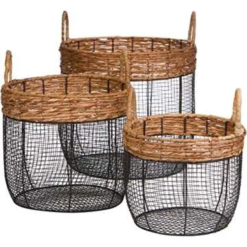 Show moreTransform your home or garden with the Trademark Innovations Oval Wire Tall Garden Home Decor Baskets, a stunning set of three uniquely designed baskets. Crafted with an elegant hand-woven banana leaf wrap around a durable wire frame, these baskets not only provide excellent aesthetic appeal but also functionality. Perfect for organizing fruits, vegetables, or decor items, they range in size from small to large, making them versatile for any space.