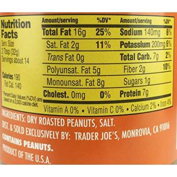 Discover the irresistible taste and incredible texture of Trader Joe's Creamy Salted Peanut Butter made exclusively from unblanched peanuts. This delightful peanut butter stands out with its rich, nutty flavor that converts everyday snacking into an exceptional experience. Each jar is hand-crafted to offer a perfect balance of creaminess and saltiness, striking a chord with peanut butter lovers everywhere. Embrace the simplicity of its ingredients—just peanuts and a hint of salt—without...