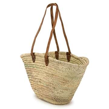Show moreIntroducing the Traders and Company Moroccan Straw Market Shoulder Bag, a stunning blend of functionality and artistry. Hand woven in Morocco, this exquisite bag showcases the vibrant craftsmanship of Moroccan artisans, making each piece not just a bag, but a unique work of art. The bag's leather handles are firmly attached with durable stitching or rivets, ensuring longevity and reliability. With dimensions of 21 inches long and 14 inches high, it offers ample space for your essentials while maintaining a chic and stylish appearance.