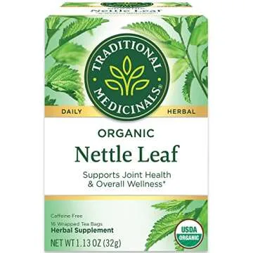 Show moreDiscover the natural benefits of Traditional Medicinals Organic Nettle Leaf Tea, a meticulously crafted herbal supplement designed to support overall wellness and promote joint health. With every sip, you indulge in the goodness of USDA-certified organic nettle leaves, known for their rich array of vitamins and minerals. Nettle tea not only brings a delightful earthy flavor but also provides a refreshing caffeine-free experience, making it a perfect choice for any time of day. Each pack contains 16 tea bags, and with a convenient two-pack, you can enjoy lasting benefits while enhancing your daily wellness ritual.