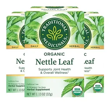 Show more Traditional Medicinals Organic Nettle Leaf Herbal Tea is a powerful blend that taps into the strength of nature to support your joint health and overall wellness. Known to herbalists as the "mother of all spring tonics," nettle leaf is renowned for its natural rejuvenating properties. This herbal tea provides an earthy, fresh, and grassy taste that can help you feel revitalized and energized, making it perfect for those moments when you need a gentle nudge to kick-start your day or health regimen.