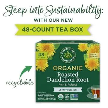 Show more Experience the earthy goodness of nature with our exceptional Herbal Power Dandelion Root Tea. This remarkable brew not only tantalizes your taste buds with its pleasantly roasted and subtly bitter notes but also emerges as a potent ally for your digestive health. Each sip invigorates your body, stimulating the liver and supporting your natural detoxification processes. Crafted with utmost care, our formula is USDA Certified Organic, Non-GMO Verified, and Kosher, ensuring you receive nothing but the highest quality.