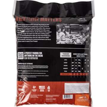 Show more Introducing the Traeger Grills Signature Blend 100% All-Natural Wood Pellets, a must-have for any grilling enthusiast looking to elevate their culinary experience! These 18 lb bags of premium hardwood pellets are expertly crafted from a blend of hickory, maple, and cherry, offering a deliciously smoky flavor that enhances everything from classic BBQ meats to fish, veggies, and even baked goods. What sets these pellets apart is their exceptional quality—made in American mills and designed to deliver a clean burn with minimal ash, ensuring that your food retains its natural flavors without any unwanted additives. With Traeger’s years of development behind them, these pellets provide the ideal moisture content for a balanced burn, making every grilling session a success.