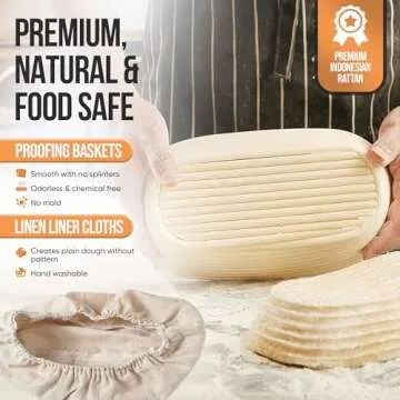 Each basket is made from premium-quality rattan, ensuring durability while allowing for excellent air circulation during proofing. The included accessories—such as the dough whisk, bread lame for scoring, and the heavy-duty scraper—are meticulously designed to enhance your baking experience. Every tool in this set works harmoniously to provide a seamless workflow from preparation to presentation. Whether you’re a seasoned baker or a novice, this set makes baking both fun and accessible.