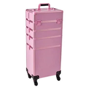 Show more If you're searching for the ultimate gift for a makeup enthusiast, look no further than this stunning rolling Cosmetic Makeup Trolley! Crafted by a trusted brand, this beautiful pink case not only captivates the eye but also brings unparalleled functionality to the world of beauty and cosmetics. Designed with a chic one-shoulder strap, this trolley makes carrying your beauty essentials an effortless feat.