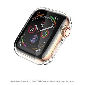 Tranesca 4 Pack 38mm Case with Built-in HD Clear Ultra-Thin TPU Screen Protector Cover Compatible with Apple Watch Series 3 - Clear+Black+Gold+Rose Gold