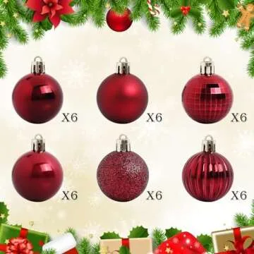 Show moreTransform your holiday decor with the stunning TranquilBliss Shatterproof Christmas Ball Ornaments. This exquisite pack contains 36 meticulously crafted 1.57-inch red bulbs, perfect for infusing your space with festive cheer. Unlike ordinary ornaments, these specially designed pieces feature a muted red hue with charming undertones of black, lending a touch of elegance and uniqueness to your Christmas tree or wreath decorations. With their lightweight, shatterproof construction, you can adorn your home with these beautiful ornaments without the worry of breakage, ensuring your holiday celebrations remain joyful and carefree.
