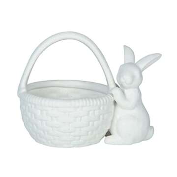 Transpac Ceramic Vanilla Bean Bunny Basket - Perfect for Easter Decor
