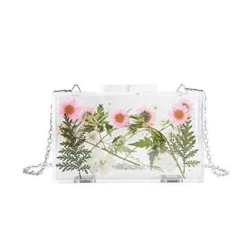 Transparent Women Clutch Bag Chain Flower Handbag Clear Purse Crossbody Bag Wedding Party bag (5238-PINK)