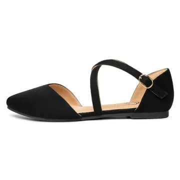 Trary Women's Flats - Comfortable Black Pointed Toe Ballet Flats with Ankle Strap