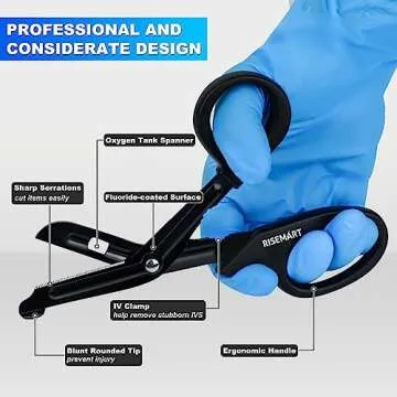 Trauma Shears & Pen light for nurses - 7.5" Fluoride Coated Medical scissors and LED Penlight for Nurse, Doctor, First Aid, EMT, EMS, Nursing (Black Bandage Scissor + Gold & White Pen lights)