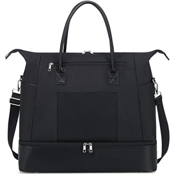 Measuring 19.7"L x 16.9"H x 7.9"W, this duffel bag meets personal item size requirements for most airlines, fitting perfectly under the seat in front of you. Its multi-functional design makes it an excellent choice for a variety of uses, including as a weekend travel bag, work bag, beach bag, hospital bag, diaper bag, or gym duffel. The separate shoe compartment keeps your sneakers or dirty clothes away from clean items, ensuring everything stays organized and fresh.