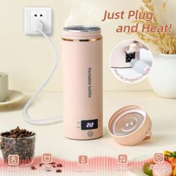 Show more Introducing the Travel Electric Kettle Portable Mini Kettle by Touxila, designed specifically for your on-the-go lifestyle! This stylish and practical kettle stands just 8.66 inches tall and weighs only 1.1 pounds, making it the perfect companion for travel, office use, or hotel stays. With a capacity of 400ml, this mini kettle isn’t just an ordinary electric kettle; it doubles as a convenient water cup, bringing happiness to your daily hydration needs. Equipped with innovative features, this kettle ensures fast boiling and customizable beverage enjoyment with its impressive 4 Smart Temperature Presets of 212°F, 176°F, 131°F, and 113°F, all conveniently displayed on an easy-to-read LCD screen.
