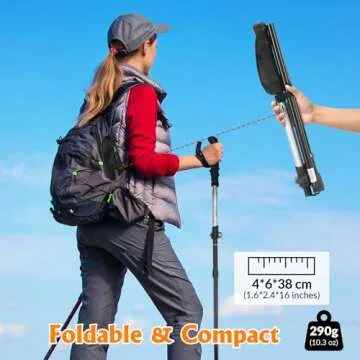 Travel Folding Trekking Hiking Pole with Carrying Case,Collapsible Cane Adjustable Walking Stick Portable Mobility Aid for Women Men Hikers Gift,Black (Black)