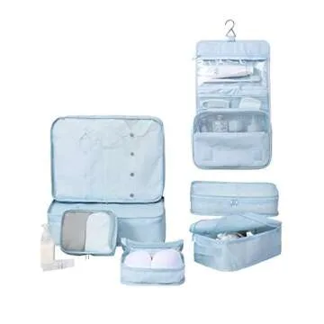 Travel Packing Cubes 7 Set, JJ POWER Luggage Organizers with toiletry kit shoe bag (Blue)